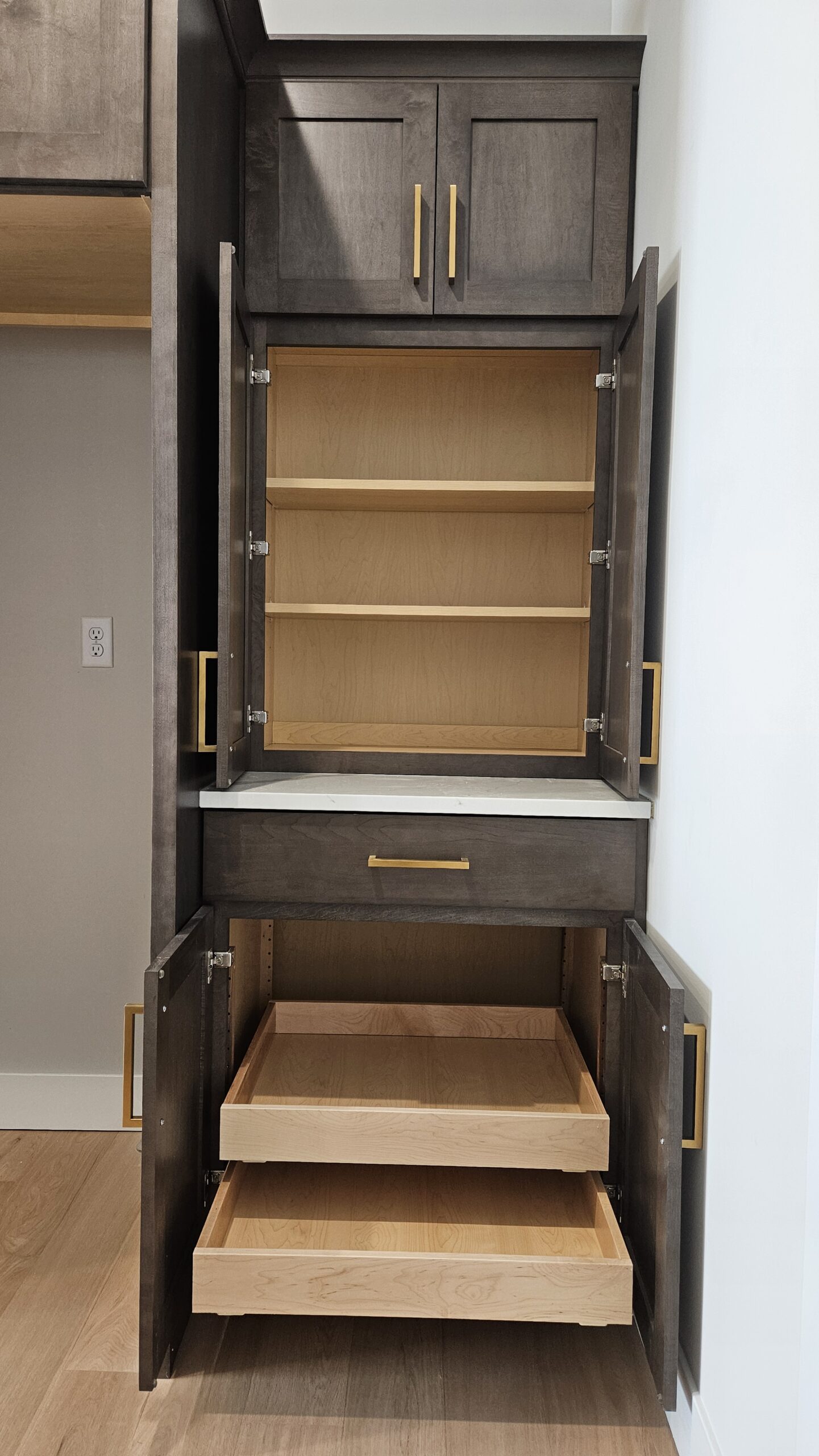 - Roll-out cabinet drawers and modifiable sink bases provide effortless access and flexibility—blending modern function with long-term adaptability